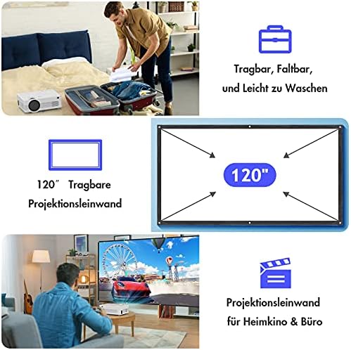 – Der Einzige WiFi Beamer mit Projektionsleinwand: Kontrastverhältnis: 8000: 1 Lampen Lebensdauer: 60, 000 Stunden Seitenverhältnis: 4: 3/16: 9 Unterstützte Auflösung: 1080P Full HD Trapezkorrektur: Manuell ± 15 ° Projektionsgröße: 32-270 Zoll Projektionsleinwand: 100 Zoll Beamer Screen Mitgeliefert-Warme Tipps von dem Herstsller: Aufgrund des Urheberrechtsschutzes können Sie nur Netflix & Prime Video APPs auf TV-Stick & PCs abspielen. Diese APPs werden derzeit nicht unterstützt, wenn Sie Smartphones & Tablets verwenden. Das WiFi-Netzwerk muss größer als 50M sein. Die Stabilität der WLAN-Verbindung hängt von der Entfernung ab. Wenn Sie es zum ersten Mal verwenden, stellen Sie eine Wi-Fi-Verbindung zwischen dem Projektor und dem Heimrouter her. Wenn Sie keine Verbindung zu WLAN herstellen können, handelt es sich nicht um ein Qualitätsproblem. Sagen Sie uns bitte Bescheid so schnell wie möglich. Es wird empfohlen, diesen Beamer in einer dunklen Umgebung order kleinen Besprechungen mit wenig Licht zu verwenden. Der Beamer hat leicht zu einstellbarer Fokus- und Trapezkorrektur Funktion. Drehen Sie das Zoomobjektiv und das Rad, bis das Projektionsbild scharf ist. Wenn Sie zum ersten Mal Ihren WiFi-Beamer verwenden, folgen Sie bitte den Anweisungen und verbinden Sie diesen Projektor zuerst mit Ihrem WLAN-Router zu Hause. Dieser Schritt ist für iOS- & Android- WiFi-Verbindungen erforderlich. Bevor Sie die WiFi-Verbindung verwenden, stellen Sie bitte sicher, dass dieser WiFi-Beamer und Ihr Smartphone, Tablet oder PC mit demselben WLAN Router verbunden sind.-Was ist in der Verpackung: 1 x HD AK-83 WiFi Beamer 1 x 120 Zoll tragbare Projektionsleinwand 1 x HDMI-Kabel 1 x Fernbedienung 1 x Netzkabel 1 x AV-Kabel 1 x Benutzerhandbuch