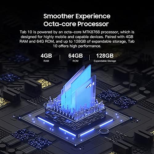 Octa-Core-MTK8768-Prozessor: Diesmal hat Tab 10 den MTK8768-Prozessor aufgerüstet, der über leistungsstärkere Funktionen verfügt und verschiedene tägliche APPs problemlos steuern kann. Eine bessere Kontrolle des Energieverbrauchs ermöglicht eine gute Akkulaufzeit, während der Bildschirm aufgerüstet wird. Das Tablet verfügt über 4 GB RAM + 64 GB ROM (TF-Karte kann auf 128 GB erweitert werden), großer Speicherplatz ermöglicht das Speichern von mehr Dateien und Videos save