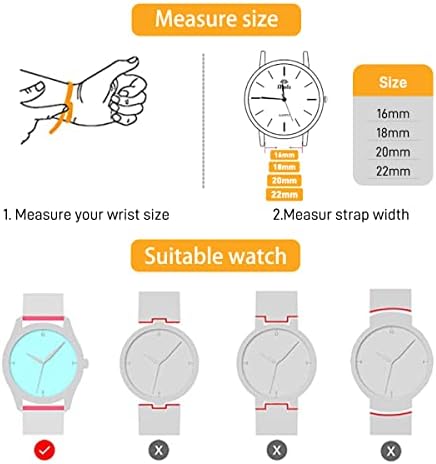 ⌚Breite:Um Ihren normalen Gebrauch und ein besseres Kauferlebnis zu gewährleisten,überprüfen Sie bitte vor dem Kauf sorgfältig die Bandanstoßbreite der Uhr.Diese Größe (16mm,18 mm,20 mm,22 mm) ist mit herkömmlichen Uhren oder Smartwatches kompatibel.