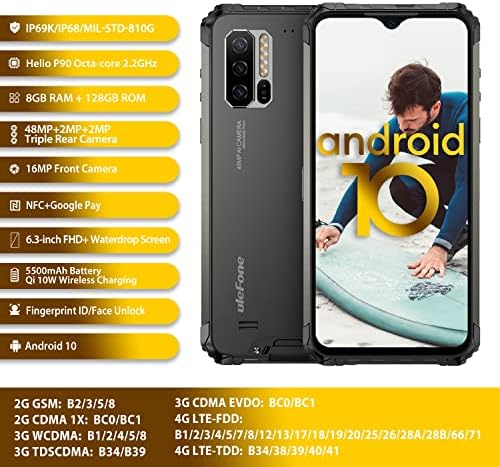 5500MAH BATTERIE & DRAHTLOSE SCHNELLE LADUNG – Ulefone Armor 7 outdoor smartphones ohne vertrag sind mit einem 5500-mAh-Akku und einem intelligenten Helio P90-Prozessor mit geringerer Leistung ausgestattet, die mit einer langen Standby-Zeit sprechen, schauen, Musik usw. mit einer einzigen Ladung aufladen können. Unterstützen Sie das Schnellladen mit dem 5V/3A15W USB-Wandladegerät, das 2-mal schneller als üblich ist und auch drahtlos aufgeladen werden kann (ohne kabelloses Ladegerät).